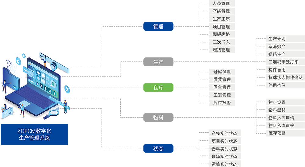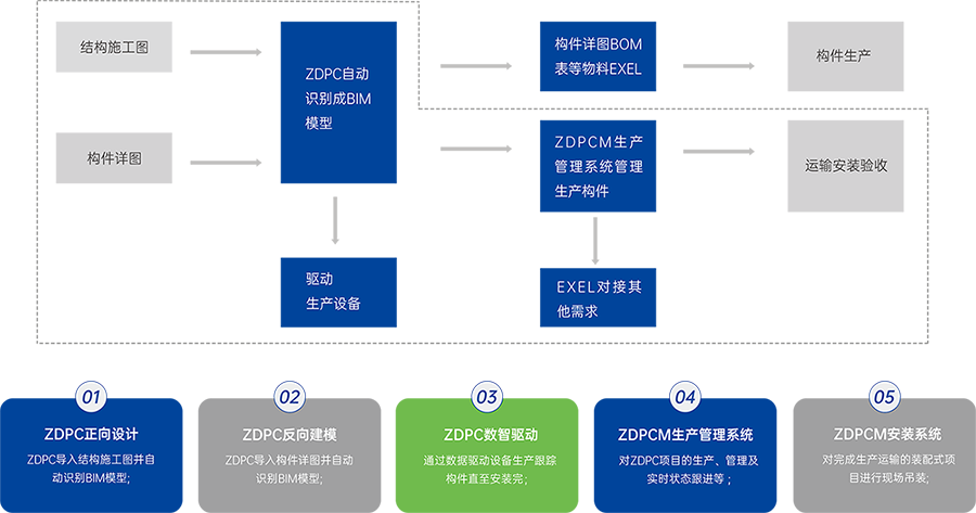 ZDPCM系统是指运用信息化手段,通过ZDPC深化设计软件生成的三维数字模型导入到本系统中,实现一模到底的目的。